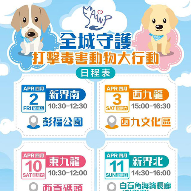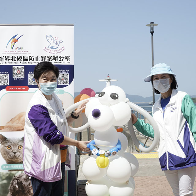 大埔近科学园的白石角海滨长廊一向是假日的好去处,警队「动物守护 • 社区大使」计划的「全城守护 • 打击毒害动物大行动」于4月11日来到最尾一站,针对打击毒害动物行为,向市民进行宣传。新界北“动物守护 • 社区大使”计划领袖及大使、大埔区灭罪委员会主席李细燕女士BBS JP、警犬队、岭南大学持续进修学院青年义工与及爱护动物协会人员在白石角海滨长廊派发宣传单张及纪念品,宣扬爱护动物信息。“守护之星”Sunny及警犬Loly亦到场与市民打成一片。