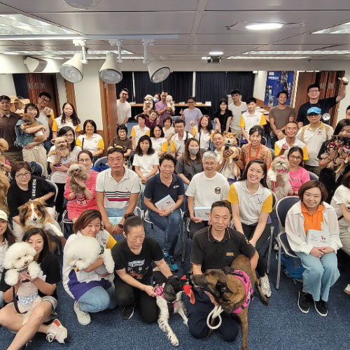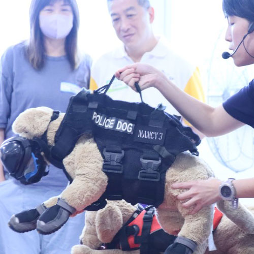 今日好多嘉宾同出席者都带咗自己嘅宠物一齐嚟支持我哋嘅活动,大会亦都诚邀左警犬队两只警犬嚟到同大家表演,佢哋分别就系Sunny同埋Dave,咁Sunny除咗系警犬之外,佢另外仲有一个身份就系我哋警队嘅“守护之星”,佢经常会走进社区同市民交流,展现亲切友善嘅一面,以宣扬“守护动物、尊重生命”的讯息。