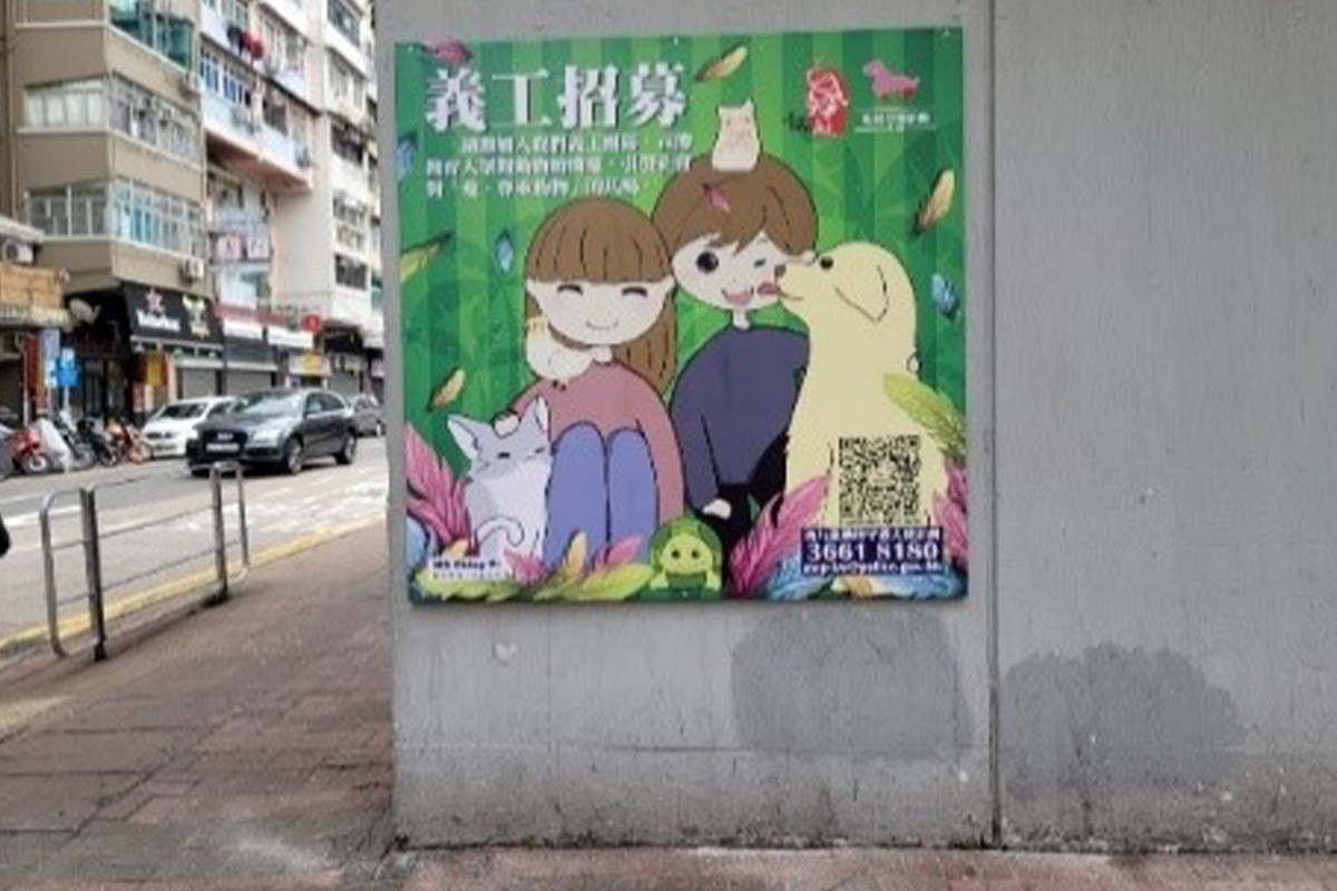 於2020年12月,西九龙防止罪案办公室成立了「西九龙动物守护义工服务队」, 以提高大眾对爱护动物的意识,引发社会对「爱与尊重动物」的共鸣,并於旺角警署外墙悬掛了一幅由义工队成员吴静宜设计的海报以鼓励市民参与。短短两星期,已接获近20名市民报名参与动物守护义工队。 而义工队亦已成功向社会福利署登记成为义工运动参与机构。有兴趣参与的爱护动物人士,可致电3661 8180联络西九龙防止罪案办公室。