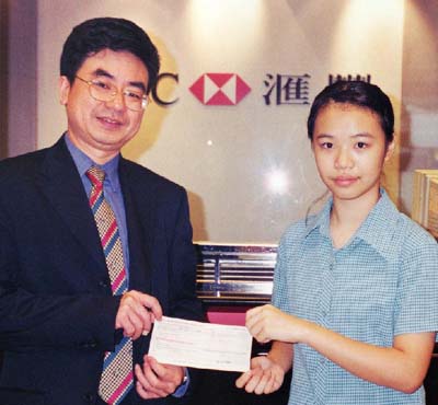 is the 'Horoscope' winner for June. Shuk-ying, 14, joined the Yuen Long JPC Club in February this year. At school her favourite subject is Chinese, while in her spare time there is nothing more she likes than to read a good book. So it's not surprising that Shuk-ying will use her $600 prize to buy some new books. Shuk-ying is pictured (right) receiving her winner's cheque from Mr Terry Tsui, Manager Yuen Long Division, HSBC. ¡@¡@