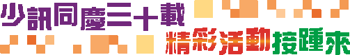 少訊三十周年慶祝活動停不了,多位成功人士將陸續獲邀與少訊會員真情對話,分享人生經驗,暢談成功之道。首個「與成功人士真情對話」分享會將於本月二十二日假尖沙咀香港藝術館演講廳舉行,將應邀出席的嘉賓為立法會主席范徐麗泰。有興趣參加的會員請向各區少訊職員查詢報名詳情。