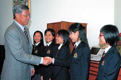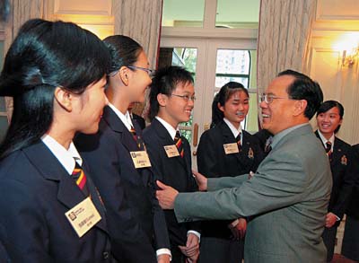 曾蔭權補充說:「你們此行除了向當地人士展現本港的價值觀之外,我亦希望大家藉 這個機會學習,如何與不同文化背景的人士溝通、包容和接納不同的意見,以及如何能夠創造一個和諧的社會。」