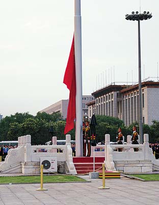 七月二十日凌晨時分,我們整裝待發,前往天安門廣場觀看升國旗儀式,想不到天安門廣場已人山人海。天剛破曉,儀仗隊便由天安門廣場步出,全場屏息凝視,當國歌高奏,國旗便徐徐升起,當時我感到十分興奮和驕傲,感受到國家的偉大。