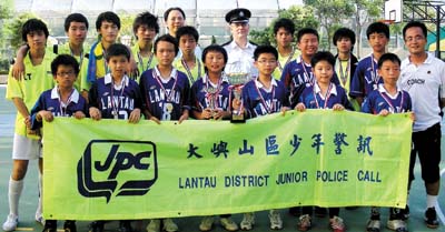 大嶼山區少年警訊多名在足球方面有潛質的會員,參加了由離島民政事務處及康樂及文化事務署主辦的「慶祝香港回歸十周年 ─ 離島區五人小型足球賽」。比賽分小學組、中學組及公開組共一百支隊伍參加。 比賽由六月份開始,經過連場賽事,大嶼山區少年警訊中學隊及小學隊均順利打入最後四強,總決賽亦於七月二十一日假東涌靈糧堂怡文中學內進行。雖然決賽當日氣溫高達攝氏三十四度,但無損少訊球員的高昂鬥志,他們以警隊不畏懼、堅毅不屈的精神,與離島區各校的足球精英一較高下。 少訊小學隊最後分別以四比零及三比零,擊敗其他對手,勇奪小學組的冠軍,而少訊中學隊亦奪得中學組的殿軍。 大嶼山警區副指揮官薛力敦當日親臨球場替少訊球員打氣,而少訊球員的家長亦有出席觀戰,分享他們的競技樂趣和得獎殊榮。 薛力敦在嘉許少訊足球健兒之餘,亦鼓勵他們繼續努力,踢出個未來。 此外,頒獎嘉賓康樂及文化事務署助理署長丘國賢和離島區撲滅罪行委員會活動工作小組主席李國華,均對少訊球員的拚博表現加以讚許。