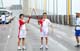 擔任第二十四棒火炬手的少訊會員麥素寧把奧運聖火傳給負責下一棒的李澤鉅。