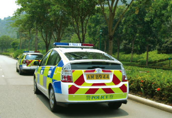 Following successful trials in Traffic Kowloon East and Lantau North over the past two years, the Force recently acquired another 92 of the latest environment-friendly hybrid vehicles for frontline operations in both crime and uniformed branches. Hybrid patrol cars decked in a new "Battenburg" livery have been delivered to Traffic Formations and will soon be seen in their high profile role on strategic road networks, alongside their large estate cousins in similar trim. "Battenburg" refers to the block pattern graphics that provide for stark contrast with any background. This pattern is scientifically proven to enhance the visibility of cars on patrol. This relatively new concept has been adopted by a number of overseas police forces in Europe, North America, New Zealand, and, closer to home, Malaysia. Senior Police Constable Ho Wing-kai, from the Task Force in Traffic New Territories South, favours the hybrid option and responded enthusiastically: "I love driving the hybrid patrol car. It has similar performance and handles just as well as the vehicle it has replaced and I appreciate the Force's contribution to reducing pollution." On Hong Kong Island, traffic officers are similarly grateful for a change in both livery and vehicle. "The new livery design will definitely enhance the safety of police officers and road users as it is very conspicuous and can be spotted from far away," said Constable So Chi-wai. Judging from the scheme's popularity with frontline officers, the introduction of more energy efficient, environment-friendly vehicles is a step in the right direction and one that surely reinforces social consciousness in the Force.