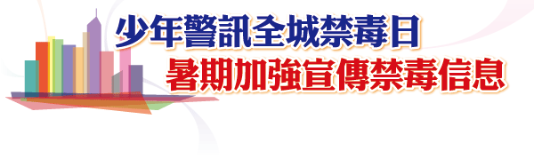 抗毒工作,積極參與七月九日在各區舉行的第六次「少年警訊全城禁毒日」活動,協力向青少年宣揚抗毒信息。 數百名少訊會員出席深水�囃粥洈爾T毒先鋒宣誓大會及油尖警區的簽署誓章活動,以身作則,承諾遠離毒品。 少訊會員亦參加了邊界警區連同禁毒處及其他政府部門在落馬洲支線管制站舉行的暑期禁毒活動開展禮。除了得到少訊全力支持有關活動,非政府機構人員亦在 暑假期間於管制站內設立服務站,就毒品問題提供輔導服務。 此外,超過五百名少訊會員參與黃大仙警區舉辦的「黃大仙無毒有型Teen」活動,透過綜合表演、繪畫比賽、海報及口號創作比賽等,把禁毒信息廣泛傳遞 至各個層面。 其他活動還有派發宣傳單張、參觀藥物資訊天地、電影欣賞會、野外定向等。 「少年警訊全城禁毒日」計劃由禁毒基金贊助,於二○○八年十二月展開,由各警區和少訊會員共同推動,至今共舉行了六次禁毒日活動,目的是加強青少年禁 毒的教育及宣傳工作,以及提高公眾對青少年吸毒問題的關注。 「暑」無毒誘通識Talk
