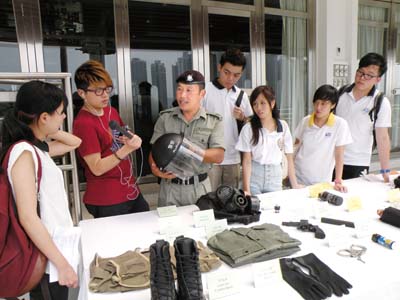 多少汗水和辛勞?五月最後一天是炎熱的一天,我以JPC-J的身份到訪PTU總部。抵著猛烈的陽光,走了大概十分鐘的路程到達PTU總部後,我已熱得滿身是汗,但當我 看見受訓中的警務人員穿著長袖的防暴制服,在沒有任何遮擋的操場上,昂首闊步,眼神堅定地受訓,「刻苦」成為我對PTU的第一個印象。 PTU向來給人「酷」的感覺,藍色巴雷帽,整齊的制服,配上長靴,在街上作反罪惡巡邏。這天,我們有幸邀請到其中一位PTU教官鄧俊豪督察(鄧 SIR)講解訓練及裝備。外表「酷」、曬得黝黑的鄧SIR,其實非常和善。他告訴我們PTU不但需作反罪惡巡邏,還要肩負香港各大型活動的人群管制和處理 激烈示威甚或暴動等重任。 由於他們的工作殊不簡單,所以要先接受十二週的刻苦訓練,包括體能訓練、遇抗控制術、鐵馬及繩欄的使用、控制技巧、直昇機訓練、反恐課堂演習、處理重 大事件及災難事件應變等。PTU人員的訓練課程密集,為的就是以最佳狀態維護法治。 據鄧SIR說,PTU人員在任何天氣下都會如常訓練及演習,以令各人員在不同崗位及環境下,仍能保持最佳狀態。在我們採訪的那天,因為天氣酷熱,有幾 位學員曾感不適,但稍事休息後,他們又立刻重投訓練。這種永不放棄的堅定,確實叫人感動和敬佩!由於操場太大,幾位早已被太陽晒得黝黑的教官們亦汗流浹 背,同時還要扯破喉嚨地教授戰術,讓人深深感受到他們要訓練出精英中的精英為市民服務的決心。 除了學員們的防暴訓練外,教官們還向我們展示PTU的各種裝備,包括頭盔,多用途背心,防毒面具,手套,野戰靴,催淚彈,透明圓盾牌,雷明登槍,半自 動槍等。我們更有幸登上裝甲車,參觀車上的裝備和設施。 在裝甲車上,我慶幸它們都沒有出動的機會,也深深感受到香港的繁盛和平是香港警察機動部隊、甚至整個警隊的努力成果。如果各位在街上遇到他們,不妨點 個頭,再加上一個微笑,以示對他們的一份支持,一份敬意。 ![]() |