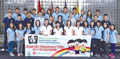 使的身分訪問加拿大,履行宣揚滅罪信息和介紹香港的使命。他們回港後向政務司司長林鄭月娥及警務處處長曾偉雄匯報該次行程的成果。 滅罪大使於八月二十至二十七日遠赴加拿大溫哥華(Vancouver)和里賈納(Regina),獲加拿大皇家騎警(Royal Canadian Mounted Police, RCMP)及溫哥華警察局(Vancouver Police Department, VPD)接待。 在溫哥華期間,滅罪大使到訪不同警察單位,了解當地警務工作。加拿大皇家騎警素里警局(RCMP Surrey Detachment)安排其緊急應變組、警犬隊及青少年服務組的警務人員向滅罪大使介紹日常工作和裝備,而溫哥華警察局則安排滅罪大使參觀警察博物館和 騎警隊等,以認識當地警隊的歷史和日常運作。 在里賈納期間,滅罪大使入住加拿大皇家騎警訓練學校(RCMP Training Academy),參觀槍械、駕駛、體能和戰術等學警訓練設施,並觀賞了步操及制服檢閱儀式,更有機會與當地學警交流,了解他們的訓練生活。 此外,當地警方青少年服務組RCMP Richmond Youth Section和VPD Youth Services Unit/School Liaison Unit,分別安排其青年活動計劃RCMP Youth Academy的師生和VPD Student Challenge Programme的學員與滅罪大使會面。滅罪大使向當地青少年介紹少訊計劃和「�生銀行之協助警方撲滅青少年罪行比賽」,而兩個青年活動計劃的學員則與 滅罪大使分享參與當地活動的經驗,彼此透過這次文化交流建立了友誼。 回港前,滅罪大使在溫哥華觀光,到史丹利公園(Stanley Park)、格蘭佛島(Granville Island)、漁人碼頭(Fisherman's Wharf)、三文魚養殖場及藍莓田等地方遊覽,了解當地的風土人情及欣賞加拿大美麗景色。 回港後,警務處處長曾偉雄於九月十日與滅罪大使共晉午膳,並一同拜訪政務司司長林鄭月娥。滅罪大使分享了於這次比賽及到加拿大交流的得著。林鄭月娥勉 勵他們在這次比賽後繼續發揮香港青少年滅罪大使的角色,在社區、學校、家庭,以至朋輩之間推動滅罪工作,使香港成為世界上首屈一指的安全和穩定的城巿。 政務司司長林鄭月娥由警務處處長曾偉雄