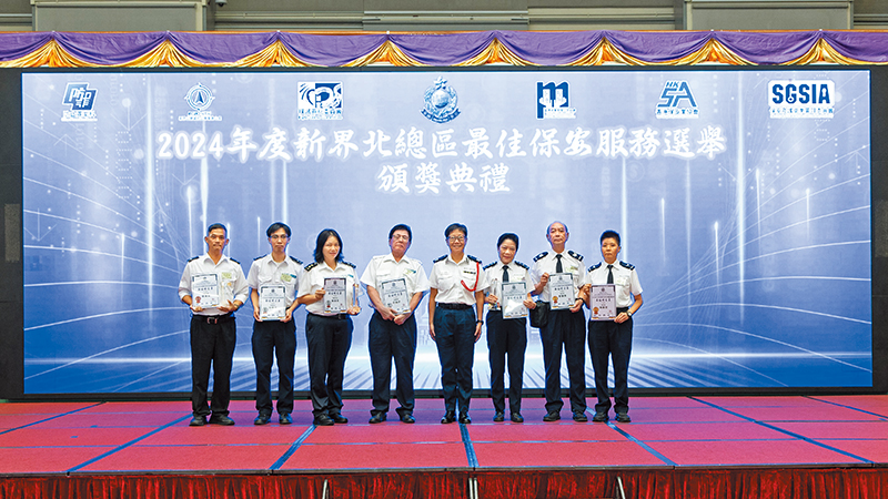 新界北總區防止罪案辦公室於九月十一日舉行2024年度最佳保安服務選舉頒獎典禮。今屆共88間公司榮獲五星級物業保安管理獎,九間積極協助警隊推動防騙宣傳的公司獲頒卓越防罪物管獎,七名保安員分別獲得最高殊榮的最佳保安員金、銀、銅獎。