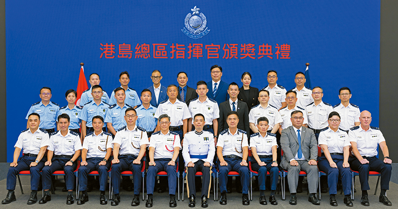 Regional Commander of Hong Kong Island (HKI) Au Wing-leung (middle, front row) presented Police Long Service Medals and Clasps, Long and Meritorious Service Certificates for Civilian Staff, Commanding Officer’s Commendations and Best District Investigation Team Awards 2024 to 173 disciplined officers and civilian staff at a presentation ceremony held on September 15 in commendation for their exemplary services and contributions to the Force.