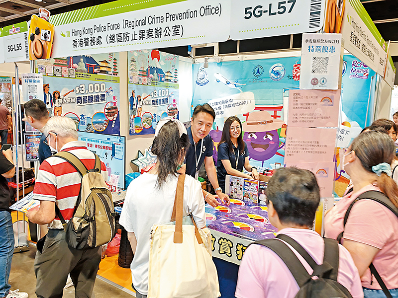 The six Police Regional Crime Prevention Offices (RCPO) and the Crime Prevention Bureau (CPB) set up a themed booth named “Travel Reward Carnival” at the “Travel Expo 2025 Autumn” in the Hong Kong Convention and Exhibition Centre, Wan Chai between September 26 and 28. Through interactive games and eye-catching leaflets, it deepened the public’s understanding of travel scams and home security while away.