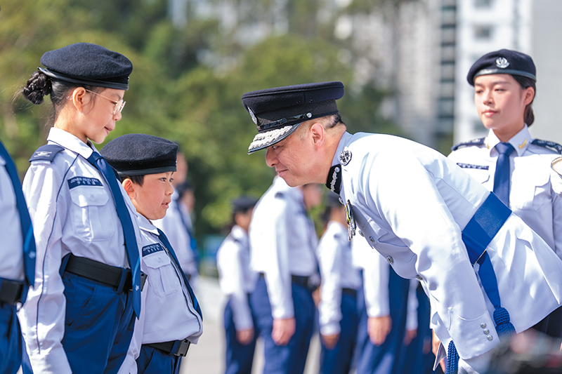 處長致辭時表示,對學員的表現感到鼓舞和振奮,並以自身於警察學院受訓的經歷勉勵學員繼續拼搏和付出,透過步操鍛鍊堅毅意志,以成為「青年領袖、