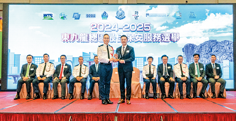 東九龍總區防止罪案辦公室於十月二十三日舉辦2024至2025年度東九龍總區最佳保安服務選舉頒獎典禮,主題為「共創安居,全賴有你」。