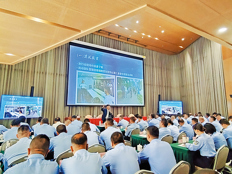 At the invitation of the Guangdong Provincial Public Security Department, Commandant of the Police Tactical Unit (PTU) Headquarters Mok Hing-wing delivered lectures at the Training Program for Newly Appointed Police Practical Instructors on October 28. Using the Hong Kong PTU as an example, the lectures outlined approaches to enhance the practicality of instructor trainings and courses. Participating officers came from places including Guangdong, Guangxi, Tibet and Xinjiang. They actively engaged in discussions, deepening exchanges on police training. The Guangdong Provincial Public Security Department also hoped to draw on the experience of the Force to strengthen its professional competence.