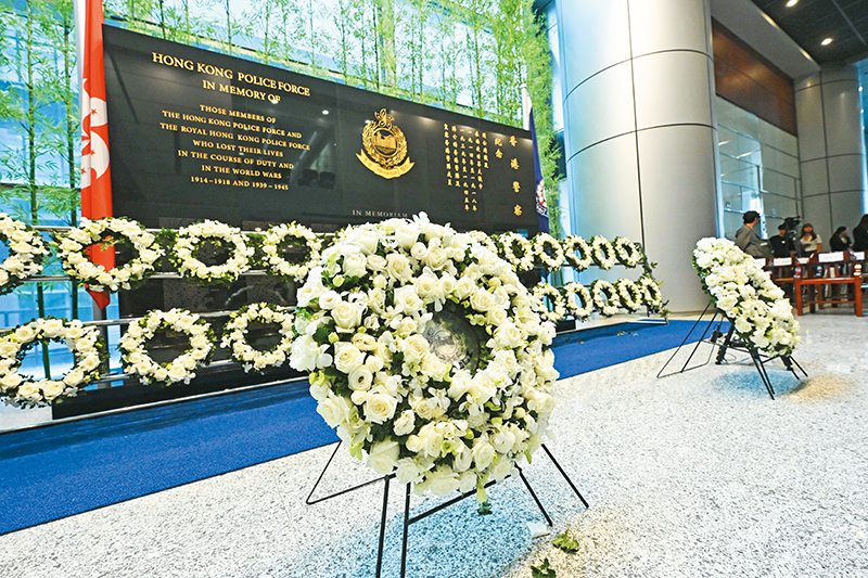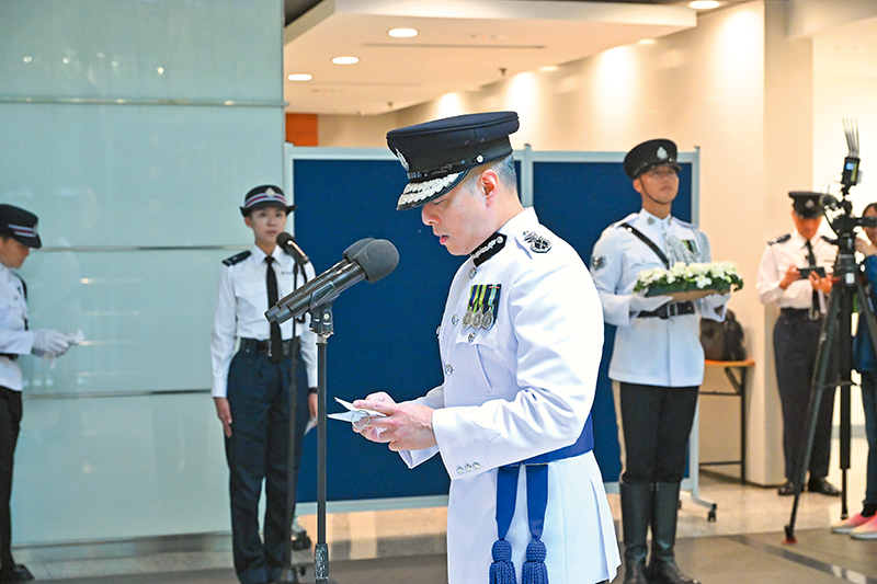 He mentioned that the spirit of the fallen comrades and all devoted Force members has led generations of colleagues to pass on professionalism and the finest traditions. This has enabled the entire Force to forge ahead and tide over obstacles despite challenges to law and order, major incidents, natural disasters and pandemics, allowing Hong Kong to be back on the right track and ensuring the stability of citizens' lives.