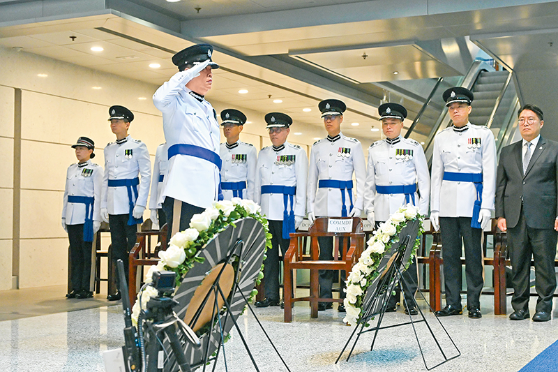 The Force Remembrance Day ceremony was held at the Police Headquarters on November 7 to honour regular and auxiliary officers who had fallen in the line of duty. Commissioner Chow Yat-ming, Commandant of the Hong Kong Auxiliary Police Force (HKAPF) Leung Sai-kwong, Senior Directorate Group members, officers at Assistant Commissioner rank and their auxiliary and civilian equivalents, as well as representatives from major formations of the Force, HKAPF and staff associations, attended the ceremony.