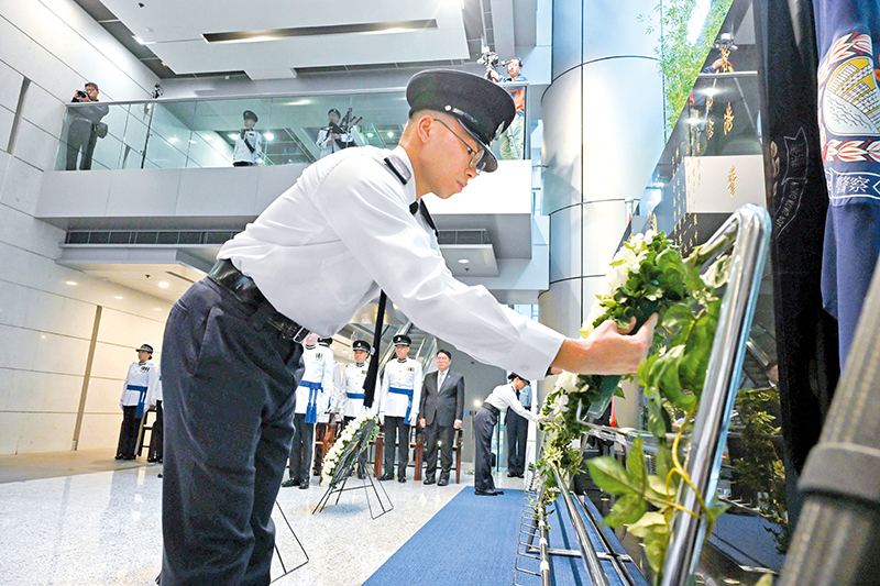 他提到,殉职同袍与所有竭诚付出的警队成员心系社会的光芒,引领一代又一代的同事,让专业精神和优良传统得以薪火相传;亦驱使警队在面对不同的治安挑战、重大事件、天灾和疫症,仍能砥砺前行,跨越重重障碍,令香港社会重拾正轨,市民安定的生活得到保障。