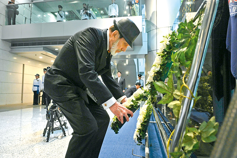 处长致辞后,警察乐队号手吹奏《最后岗位》,在场人士默哀两分钟。处长与辅警总监先后献上警队及辅警花圈。