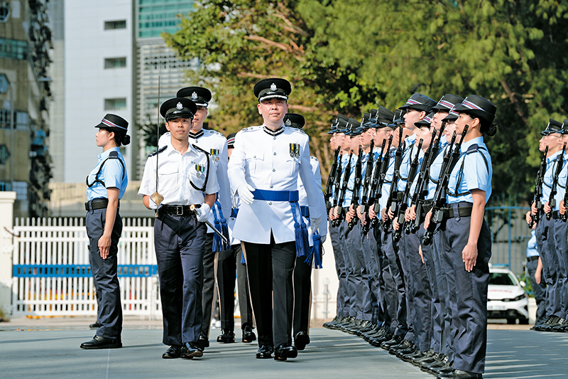 香港輔助警察隊(輔警)總監梁世光博士於十一月一日在香港輔助警察總部主持輔警結業會操,檢閱72位畢業生。