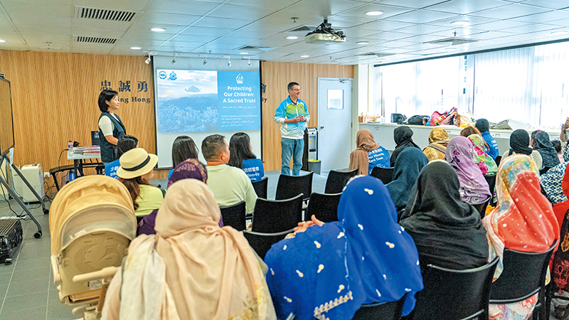 東九龍總區副指揮官顏鐵誠致開幕辭時表示,保護兒童是社會共同責任,警隊會繼續與社區攜手加強教育工作。其後,東九龍總區防止罪案辦公室與少數族裔關愛隊人員向參與家長介紹最新的《強制舉報虐待兒童條例》及有關支援服務,並分享保護兒童信息及毒品禍害。