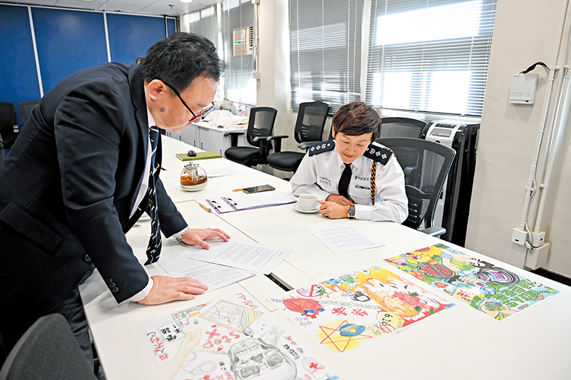 The contest drew an overwhelming response. Students expressed their enlightenment of staying away from drugs and loving life in their creations. As judges, KTDIST Commander Cheung Tin-yee and Chairman of Kwun Tong District Fight Crime Committee Mr Chan Wah-yu selected the winning works from numerous outstanding entries that delivered compelling impact. For the Award Presentation Ceremony held on December 18, 2025, the two judges and Chairperson of Kwun Tong District Junior Police Call Honorary President Council