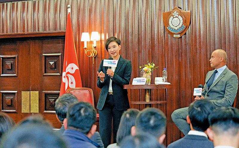 The January 19 debriefing session was hosted by KM Champion (Digital Policing) Senior Superintendent Swalikh Mohammed. The then ACP IS, reminiscing about her 37 years in the Force, shared the handling of serious crimes and the challenge of developing the HKSOS emergency mobile application. She emphasised the critical role of “Digital Leadership” in the Force’s digital transformation, and mentioned P-TV, an internal video platform, that enhances communication and knowledge sharing within the Force. She pointed out that people are the greatest asset, and also urged the management to give timely support and recognise the contribution made by their team members.