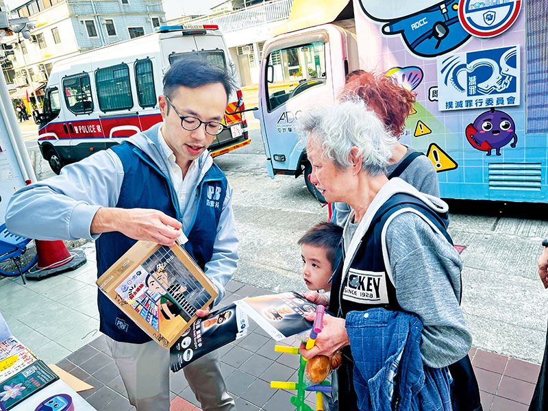 The Crime Prevention Bureau (CPB), in collaboration with the Fight Crime Committee, District Fight Crime Committees, Regional Crime Prevention Offices, District Police Community Relations Offices and SafeCity Ambassadors, conducted a two-week Winter Anti-Crime Publicity Campaign from January 13 to 26. During the campaign, the Crime Prevention Promotion Truck toured across the territory. Through interactive games, crime prevention talks and distribution of souvenirs, the campaign conveyed the latest anti-crime information to the public, including advice on burglary, robbery, shop theft and deception prevention.