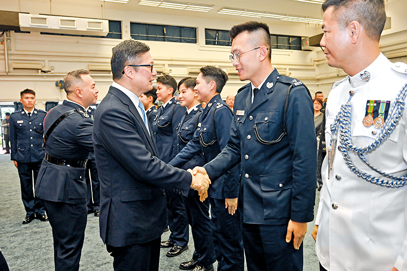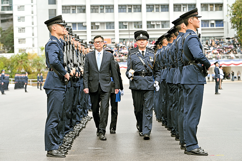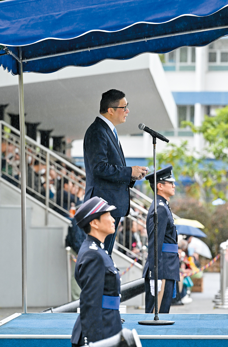 最后,他引用国家主席习近平的话,指维护国家安全和社会稳定,守护人民幸福和安宁,是人民警察的神圣职责。他勉励学员秉持「铁骨为魂,仁心为本,慧眼为导」,实践「心有所信,方能行远」的理念,履行警队「忠诚勇毅、心系社会」的使命。