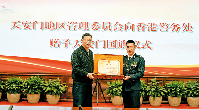 On February 5, Assistant Commissioner (Public Relations) (ACP PR) Chan Sze-tat led a delegation to Beijing to attend the National Flag Presentation Ceremony, and received a national flag presented by the Administration of Tiananmen Area of Beijing Municipal People’s Government.