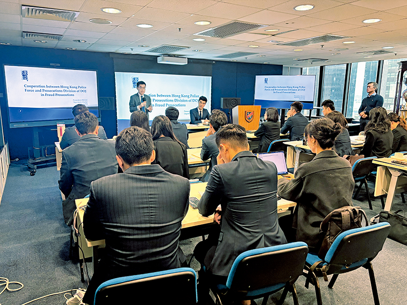 The course emphasises practical application, with its content covering various kinds of commercial fraud and case investigation skills. Representatives from the HKMA, the SFC, the HKEX and the Department of Justice (DoJ) also shared their experiences as guest speakers, among which Deputy Director of Public Prosecutions of the DoJ Mr Chau Tin-hang even discussed the prosecution of various kinds of commercial fraud with the participants.