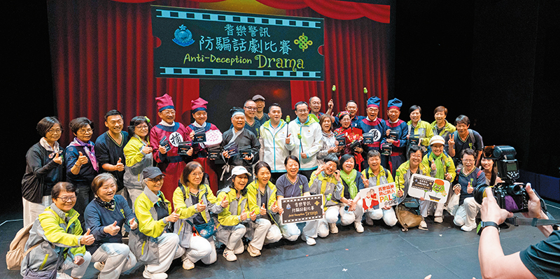 The Final of the first Senior Police Call (SPC) Anti-Deception Drama Competition was held at the East Kowloon Cultural Centre on March 26. During the event, Regional Commander of New Territories South (RC NTS) cum Chairperson of the SPC Central Advisory Board (CAB) Cheung Wai-wah, together with SPC CAB members Ng Sau-kei, Dr Lam Wai-wing and Cheung Ka-ho, presented awards to the winning teams.