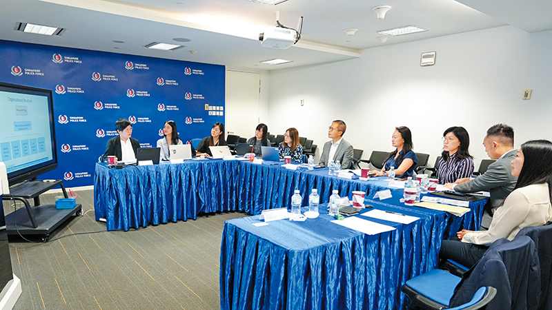 访问期间,新加坡警察部队向代表团讲解其纪律处分机制。代表团亦分享警队现行的措施。双方其后就改善员工关系与福祉、运用创新方式吸引及挽留人才,以及完善内部沟通架构等进行探讨。代表团亦到访兀里邻里警局,体验 新加坡警察部队如何运用创新科技提升工作效率。
