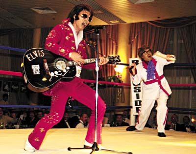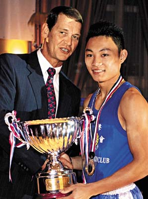 Once more the Police Officers Club hosted what is rapidly becoming the social event of the year in the form of the third successive Police Boxing Night on December 6, 2002. The 200 plus available seats were booked well in advance and those on the waiting list were no doubt disappointed not to get a seat. This year the top table was graced by the presence of the Director (Operations), Mr Tang King-shing, as the guest of honour, flanked by Mr Mike Dowie and Mr Ian Seabourne, in their roles as Chairman of the Police Sports Council and Chairman of the Police Boxing Club respectively. There were five fights scheduled for this year featuring a mixture of boys from the Breakthrough Boxing Club (in blue) and two officers (in red)fighting for the newly formed Police Boxing Club. Their opponents came from a mixture of other boxing clubs in Hong Kong and this saw a departure from previous years where the fighters had all fought from within the same club. The event was once again hosted by the irreplaceable David Williams who had the crowd rolling in laughter from start to finish with his uncanny resemblance to Austin Powers. The Breakthrough boys acquitted themselves well by winning two out of their three bouts. Once again Mr Ngan Wing-yiu took the Hoggard Cup for overall best fighter. Next up was Senior Inspector Mark Mak Man-yu in his first fight and pitted against a much younger boxer from the Box for Fun club. Mark put in a gritty performance and no doubt his superior fitness gave him the winning edge. The final fight of the night was the much talked about and long-awaited bout between Yuen Long Divisional Commander, Superintendent Mr Danny Lawley, fighting in competition for the first time in many years and James Woods, a towering lawyer who also plays for Hong Kong in rugby. This was James's first fight and although he put in a plucky performance he was no match for the superior boxing skills and ring-craft of Danny who won all four rounds much to the delight of the (admittedly partisan) crowd. Robbie McRobbie, the Assistant Manager of the POC, continues to receive plaudits from those who attended and no doubt the whole event reflects very favourably on the Force as a whole and will be a permanent feature on many a social calendar to come. See you next year! POC News A very Happy New Year to all our Members! This year we plan to hold a major social function every month, with lots of extra promotions and entertainment in between to look out for -- so get ready for 'A fun 2003 down at the POC'. Plus, please keep your comments, suggestions, and donations coming -we want to hear what you want. And finally, if you wish to receive Club news by e-mail, please send me your address to asst-manager-poc@police.gov.hk Application forms for the Lunar New Year Fireworks Dinner, on Sunday February 2, are available now on Noticeboard, at Club Reception, or we can fax/PEN to you. The price is $2,888 for 12 person Chinese Dinner, and $238 for adults for Western Buffet ($188 for kids). Application forms must be returned to us by January 19 -so hurry, hurry, hurry! TSK Hall *On Friday January 10 join us for a great BBQ Dinner Buffet, with grilling on the balcony and singing and dancing inside - fantastic value at just $138 per adult and $90 per child. Book now on 2891-4128. *Why not slip down to the Club on Saturday January 18 for another of our popular Snake Banquets -$1,800 for 12 persons or $1,200 for 10 persons. Book now on 2891- 4128. Beat Cafe & Verandah Bar *Special Chinese New Year dishes now available at lunch and dinner *The Coffee Promotion continues with an unbeatable price of $10 per cup, while the Carlsberg Promotion also runs throughout January.