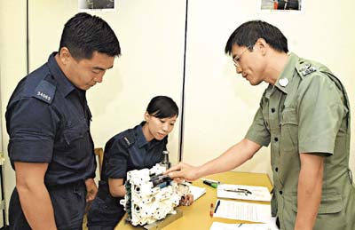 Thanks to the Enhanced Training Programme on Dual Qualification, commonly known as the Dual Training Programme (DTP) for Junior Police Officers, Marine Police officers now have the opportunity to simultaneously enrich their knowledge of both the deck and the engineering sides of operating marine launches. Under the DTP, it will take only two years' sea-time for an officer to qualify for both the Marine Police Coxswain Certificate (MPCC) and the Marine Police Technical Certificate (MPTC). In an interview with OffBeat, Assistant Force Training Officer Marine (Navigation & Seamanship) Mr George Tang Ying-kit explained: "In the past, marine training was divided into two streams - deck (MPCC) and engineering (MPTC). However, times have now changed, with launches becoming more advanced with onboard machinery and navigational equipment capable of operating in an automatic mode. At the same time, the educational level and capabilities of our officers have also improved a lot. So, now is the time to change our approach to training. "Previously, Marine officers would move on to more specialised training in either deck or engineering streams after obtaining the Marine Police Efficiency Certificate (MPEC) and serving one year's sea-time. They would then need to serve a further two years' sea-time before they could be awarded either the MPCC or the MPTC. "Officers who were assigned to a particular stream would have no opportunity to work in the other stream and this has operational drawbacks. For example, when there is a need to take over control of a vessel immediately during a stop and search operation, the type of training received by individual officers can hamper manpower deployment. "Under the DTP, each dually trained and dually qualified officer will be capable of handling all such spontaneous incidents. It will allow for a more efficient and effective utilisation of human resources because the deployment of individual officers will no longer be constrained by their having received no training or qualification in one or the other of the two streams. Hence, the management will enjoy greater flexibility in their day-to-day deployment of human resources." The DTP enables the Marine Region to adopt a versatile marine policing strategy, which focuses on a more flexible and efficient deployment of resources. Beneficial to Participants Not only is dual training beneficial to the management, but also to the individual officers. Mr Tang said: "The programme will be conducive to enhancing the self-value of individual officers. After training, they will no longer be limited to working in either the deck stream or the engineering stream and this will enhance their competitiveness. "Morale should be further enhanced as officers will have more training opportunities and enjoy a greater variety of job opportunities. What is more," he said, "the qualifications obtained under this programme can be translated into commercial licences." Under the DTP, officers will be issued with a task book as soon as they pass the MPEC. The book includes information on both the deck and engineering aspects of their on-the-job training and this will encourage them to gain experience in those areas. It will also result in a reduction in the total amount of training time required for qualifications in both the MPCC and the MPTC. "Moreover," said Mr Tang, "training will no longer be restricted to classroom teaching at the Marine Police Training School - it can take place anywhere. Supervisory officers at the sub-unit level can provide ample opportunities for frontline officers to accumulate more experience in both the deck and the engineering aspects of their daily work while staff at the divisional level will be able to monitor the progress of individual officers. "The initial response to the DTP is encouraging and officers are anxious to take part in it," he said. "We understand that some officers may not be able to achieve the dual qualifications but they will still be fairly treated." Vow to be All-round Cops Marine East Division Woman Police Constable Ms Joanne Yam Tsz-yan and Marine South Division Police Constable Mr Lee Kin-man were among the first batch of officers signing-up for the DTP. Both had previously specialised in the deck stream and were eager to enrich their knowledge in the engineering aspects with a view to becoming 'all-rounders'. Ms Yam said: "In the beginning, I encountered some difficulties in learning about the mechanics of operation and maintenance of engines. But, with the help of my instructors, I soon overcame the difficulties and doubled my efforts to achieve new skills. "I love my work on the Police launch. In the past, I have taken a one-year private course in marine engineering and have all along developed a strong interest in this aspect. The programme is useful and can enhance my knowledge indeed," said Mr Lee. Both of them believe that dual training for Marine officers is the right way forward. Ms Yam said, "After I obtain dual qualifications, I will be able to lend a hand to any of my colleagues in the engineering stream whenever it is necessary. It should also enhance my working ability and career prospects."
