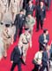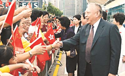 行政長官董建華伉儷在金紫荊廣場與市民握手。