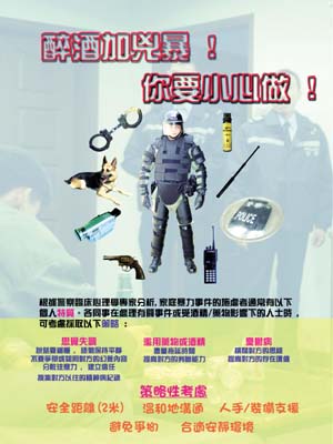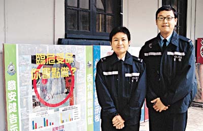 過往有些同事因沒有意識到職業安全與健康既重要又微妙的關係,從而使自己遭受突發性的傷害,或累積隱性的長期勞損而引致疾患,警隊的人力資源調配亦可能因此受到影響。 現時各警區單位指揮官都會對員工進行的每項工種作出仔細的評估,以預計對員工健康造成負面影響的危機比率,並採取相應的監管措施。 西九龍衝鋒隊警司黃梅潔接受《警聲》訪問時表示,將一些經常會引致同事們在執行職務時受傷之成因進行分析,然後訂出防範指引至為重要。 西九龍衝鋒隊人員「職安健」的地區工作清單上被評為最高風險的首三項工作,包括拘捕疑犯、控制受酒精或藥物影響下人士,和前赴緊急事故現場。 為了提升衝鋒隊同事的「職安健」觀念,黃梅潔建議用設計吸引的海報形式,張貼在基地的當眼地方。她於去年十月,倡導成立一個由各小隊代表組成的海報設計小組展開有關工作。該小組進行數據分析及個案研究後,他們參考外國警隊在處理類似工種時所採用的防禦措施,以及警察臨床心理學家劉錦麟博士在一個處理家庭暴力事件研討會所講述的寶貴資料,經集思廣益,製成三幅海報。這三幅引人注目的海報,張貼於當眼的槍房門外,不但成為基地建築物的焦點,更大大提高同事們在日常執行職務時對「職安健」的意識,及能防禦性地減低或避免招致身體受傷的機會。 為了讓同事更清楚「當值時因工受傷」的管理效益,西九龍衝鋒隊制訂了一套「安全表現」指數。它的內容涵蓋了各類的職業安全事項,受傷警務人員和文職人員的人數,並區分涉及因執勤、交通意外、訓練或其他工作受傷的人數和相關事故所引致的缺勤日數。 有關指數會定期每月更新,好處是讓所有監管人員能了解每個月的第一至三層職業安全事件的形成和原因,以及相關的缺勤日數和較嚴重事故的比率。管理層從指數的顯示,更可以檢討同事在訓練上的需要,繼而探索問題的解決辦法。黃梅潔又補充:「自從本年一月,西九龍衝鋒隊已經成立了一個由初級警務人員所組成的特別工作改善小組,名為『行使警力工作小組』,其中一個目的是鼓勵基層人員共商對策,以減少同事執勤時受傷的情況。」