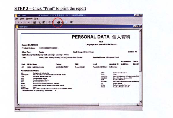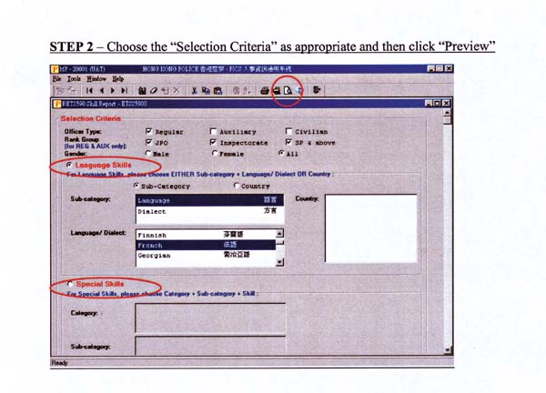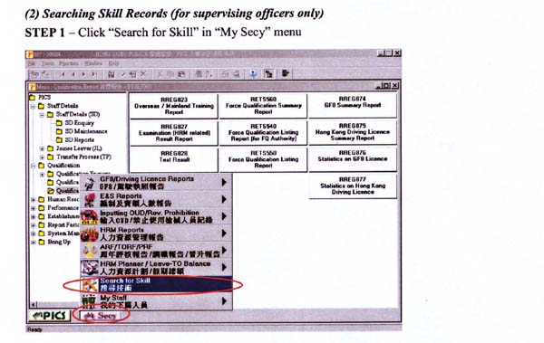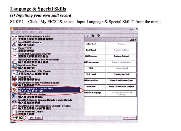 The function for language and special skill, as one of the SAP projects, aims at enhancing the PICS database as a human resources management tool by improving its capability and functionality to facilitate the identification of officers who possess the languages and special skills required for operational needs. This function allows the Personnel Wing and formation commanders to select officers to perform specific duties such as Mainland or overseas training attachment programmes and visits, receptions for Mainland or overseas law enforcement officials or operations requiring special skills.
