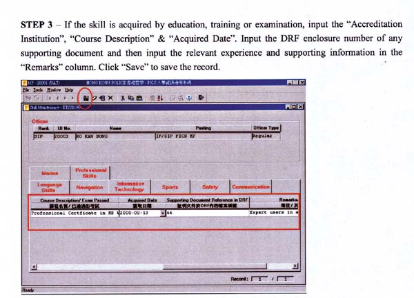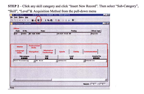 The language function was launched in April 2006 for officers to record their competency in different languages and Chinese dialects, while the special skill function was rolled out last month for officers to record their Force-related skills, including navigation, information technology, sports, safety, communication, marine and professional skills.