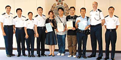 Police Constable Cheng Ting-fung and Woman Police Constable Shing Lai-wah of Tsuen Wan District's Task Force Sub-Unit have jointly won a slogan competition on occupational safety and health (OSH) organised by the Tsuen Wan District Occupational Safety and Health Committee, edging out 30 other entries. Together with the winners of five outstanding entries, the joint-winner received letters of compliments from their District Commander David Cartwright recently. The winning slogan reminds officers to always bear OSH in mind and help one another to reduce risk. |