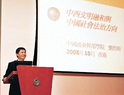 上海浦東幹部學院劉哲昕教授十月二十九日到訪警隊,並應警察學院邀請,以「中西文明融和與中國法治方向」為題,在警察總部演講廳舉行一節講座。 警隊自今年六月起開始派人員參加浦東幹部學院課程。浦東幹部學院是一所專門培訓高級領導幹部、企業經營管理者等人員的國家級基地,其課程的高規格,高要求及高水準是過往同類課程中不易找到的。人員在完成一個為期七日的課程後,會對國家的近代發展歷史、近年來社會、經濟以及基建政策上的改變加深了解和認識。 當日有一百四十多名人員出席講座;警察學院並提供英語及普通話的即時傳譯服務。劉教授給出席者對「中國法治方向」的認識補了重要的一課;出席者於講座後與劉教授進行了坦誠及友好的交流。