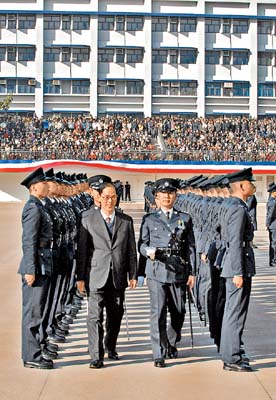 The Force, a pillar of Hong Kong's prosperity and stability, had commanded the high respect and trust of members of the public, the Secretary for Home Affairs, Mr Tsang Tak-sing, said when he inspected a passing-out parade at the Hong Kong Police College on January 10.