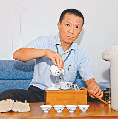 Superintendent Terence Fung Wai-kin from Marine South Division not only enjoys different types of tea, but also is very knowledgeable about tea art. With a wealth of knowledge acquired over the past 11 years, he can claim to be a dedicated fan in tea art. Terence took over the helm of the Police Tea Art Club in 2002, and since then has been doing his best to promote tea art as a wholesome hobby among Force members and their families, in support of the healthy lifestyle promotion within the Force. The club has boosted its membership to over 300 with various training courses and study trips for members. Like many other Force members who have cultivated various hobbies as means to relieve work pressure, Terence opted for tea-drinking about 11 years ago after he had been hospitalised for several days with high fever probably due to his participation in operations against smuggling when he was working at the then Anti-smuggling Task Force. Since then he enjoys tea more and more because of its benefits to body and mind. Terence has no doubt that tea, no matter which species it belongs to, is a tonic that brings peace of mind and keeps one's mind on work. "These are conducive to work!" he noted. His favourite is green tea and he has a habit of sipping it every day. To enjoy tea's intrinsic taste, Terrence goes through an elaborate process of brewing tea. And he considers tea brewing a form of art. "This is because in the process, you have to get the right ratio of tea and water; get the water at the right temperature; and set the right time for brewing. Even the quality of the water also counts," he explained. Terence is so fascinated with tea that he wants to find out more about the species, growing, harvesting, fermentation and storage of tea. To satisfy the quest for such knowledge, he has visited many tea plantations and factories on the Mainland and in Taiwan. And he has read many reference books to further his pursuit on tea art. He has also visited many overseas tea markets to update himself on the wholesale and retail of tea, as well the types of tea available in the markets. Terence has imparted his knowledge of every aspect of tea to Force members and their families by running training courses. The elementary course covers the ways to brew tea, while the advanced course covers selection, qualities, prices, and manufacturing of tea, etc. "I hope those who have attended the courses are able to find the best tea for the money they have spent!" Terence noted. In addition to training courses, Terence said his tea club organised several large gatherings every year for members and their families to share information and experience of tea art. The club has also organised trips to tea plantations and markets. To promote tea art Force-wide, Terence will produce a special website for the benefit of more Force members.