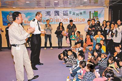 On a Family Day held on December 29, 120 family members of officers of Tsuen Wan District (TWDIST) got a better idea of the nature of the work of their loved ones. They first watched the parade of officers before the start of the B-shift and a display of police weapons and vehicles, and toured the Report Room. Then the thrill of an abseiling demonstration and performances by police dogs caught their attention and gave them some ideas of the wide range of situations that officers have to face. The police families were treated to a magic show during a tea reception, where District Commander David Cartwright praised and showed recognition of their loved ones for doing their best in maintaining law and order in the District.