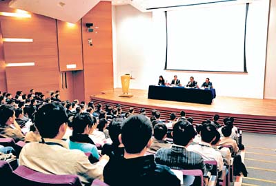The Recruitment Division of the Personnel Wing conducted a sharing session on Direct Application and the Potential Officers Scheme in PHQ Auditorium on November 26, attracting an attendance of 245 officers. Chief Superintendent Chau Kwok-leung from the Human Resources Branch officiated at the session and expressed his gratitude to all the guest speakers. To start with, Assistant Professor Viola Wong, Associate Head of the English Learning Centre of the Polytechnic University of Hong Kong and a principal marker of the English Task Paper Written Examination, gave an informative presentation on how to enhance officers' English writing skills. Then Chief Inspector Paul Gordon from the Recruitment Division highlighted the salient points of his observations about the Extended Interviews. Afterwards, Senior Superintendent Kwok Yam-shu from the Foundation Training Centre, Police College, spoke of his observations as Chairman of the Final Interview Board. Acting robotic or replaying from a drilled mode could not bring out the true merits of the candidates. Mr Kwok especially stressed that officers should first excel at their duties. A copy of video recording of the sharing session is available for borrowing in the Force Library.