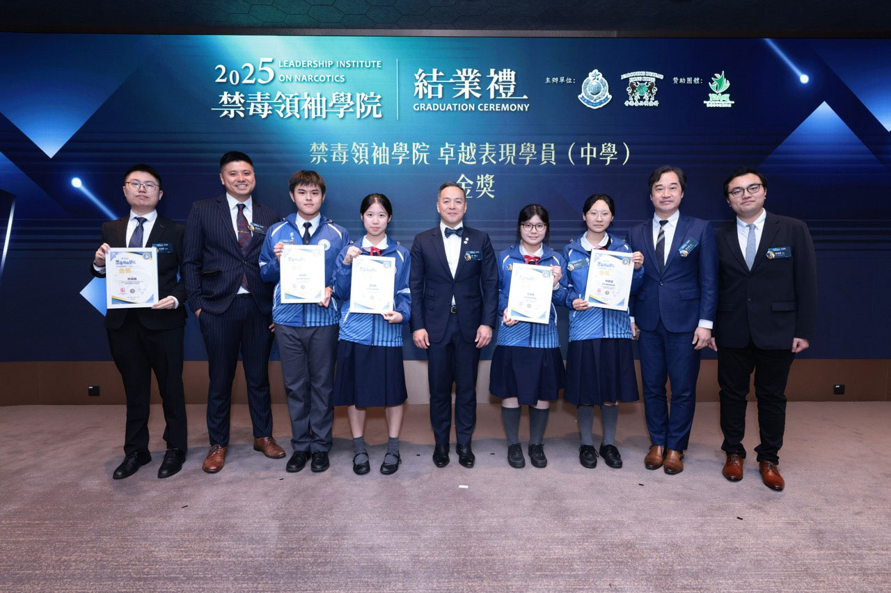 The Graduation Ceremony cum Luncheon for the third cohort of L.I.O.N. was successfully held on December 14, celebrating the transformation of 100 mentees into young anti-drug leaders. Commissioner Siu Chak-yee and Deputy Commissioner (Operations) Chow Yat-ming officiated at the ceremony and presented certificates and scholarships to outstanding performers in recognition of their exceptional achievements.