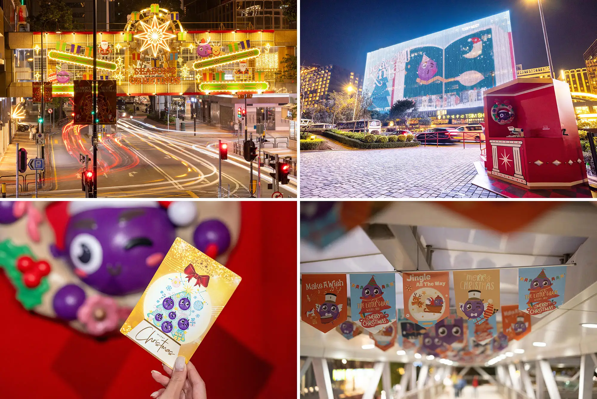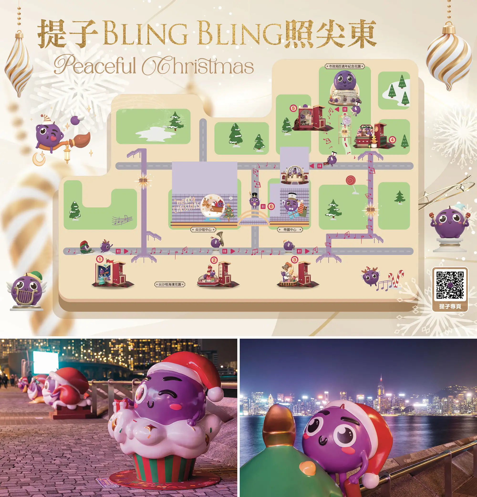 而尖沙咀中心及帝國中心的LED幕牆,將播放聖誕主題的「提子」動畫,延續去年廣受好評的視覺盛宴。麼地道行人天橋也換上全新「提子」主題燈飾與吊旗裝飾,延續市民於尖東欣賞聖誕燈飾的集體回憶。